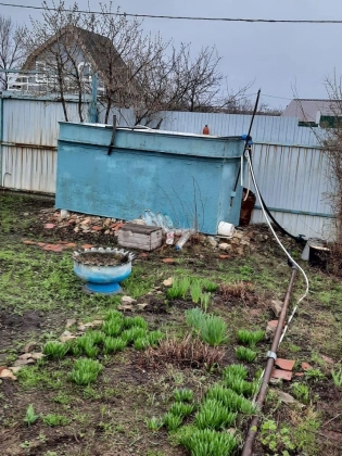 Плодовые деревья, кустарники и цветы. Вода из скважины, есть емкость под воду.