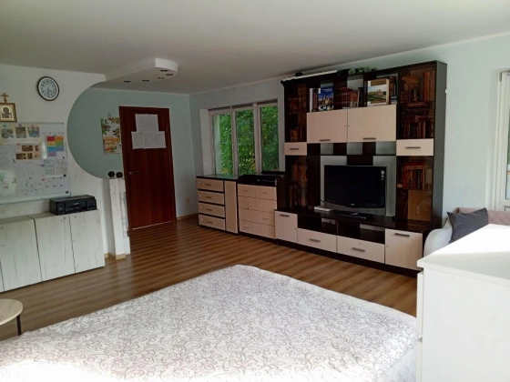 Продам коттедж возле ТЦ "Город". Общая площадь помещения 159 кв метров. Сам дом состоит из двух частей - новый дом и к нему прилегающий со внутренним входом "из дома в дом" старый дом площадью 40 кв м. Новый дом состоит из трех комнат (На первом этаже холл, комната, санузел и кухня, На втором этаже две просторных комнаты и санузел) на 3 этаже мансарда - 1 большая комната, используется пока хозяевами под хранение вещей, однако это вполне жилое и отремонтированное помещение. Дом очень уютный и светлый, из окон открывается вид на город. Во дворе четыре сотки земли, хоз постройки. Плодовые деревья - яблоня, слива, черешня и два больших дерева грецкого ореха, которые создают летом красивый шатер и дают очень богатый урожай орехов. Забор вокруг дома из профиля, электроприводные (с пульта) качественные ворота, навес под автомобиль. Земля в собственности. В зимний период самый большой платеж по коммунальным платежам 5000 руб. В шаговой доступности, детсад, 77 школа, 12 муз школа, рынок Хрустальный, поликлиника, магазины. Хорошая транспортная развязка во все стороны города.