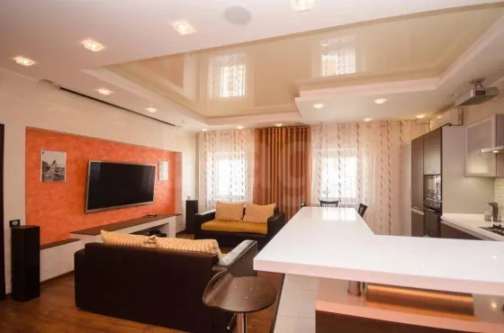 Продам 3х комнатную квартиру на Набережной  в Элитном доме с подземным паркингом и лифтом. В квартире выполнен ремонт по дизайн-проекту. Высота потолков 3-3.2 м В квартире две спальни и большая гостиная-кухня 36.5 м2. В каждой комнате сплит-система, на кухне система "Умный пол". Кухня Мария со встроенной бытовой техникой Bosch. В гостиной домашний кинотеатр. Вся мебель остается при продаже. Закрытый двор, видеонаблюдение. Звоните!