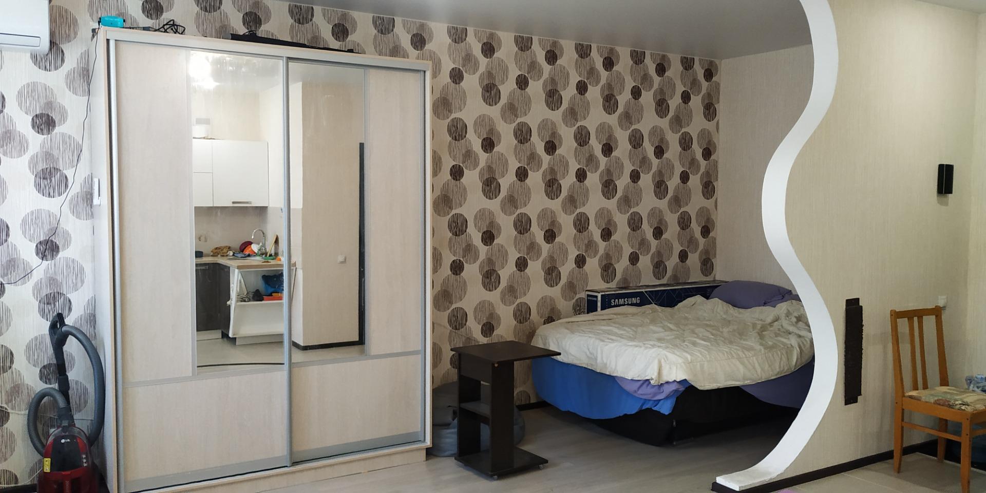 Квартира в отличном состоянии. Кухня объединена с комнатой. В пешей доступности транспортная развязка в любой конец города. До центра 15 минут. Через дорогу торговый комплекс " Мой Новый". Школа и садики в шаговой доступности. Цена 27000+счетчики.